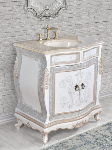 AFD Home Platine Hand Carved Vanity w Sink and Creama Marfil Marble 12016159 The Platine...