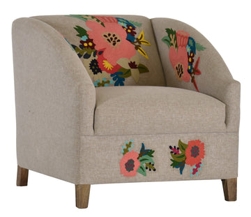 AFD Home Beige Elianna Chair with Floral Print 12020878 Designer Accent Chair Fireside Hand Embroidered...