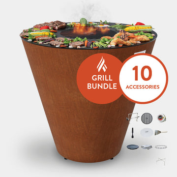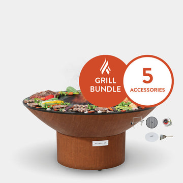 ARTEFLAME Classic 40" Grill With A Low Round Base Starter Bundle With 2 Grilling Accessories...