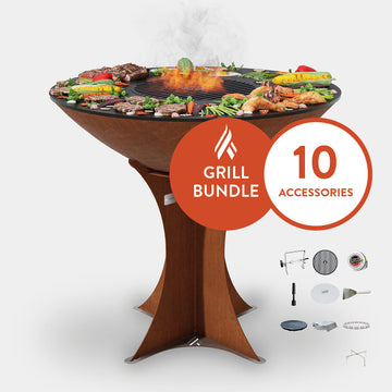 ARTEFLAME Classic 40" Grill With A High Round Base Starter Bundle With 2 Grilling Accessories...