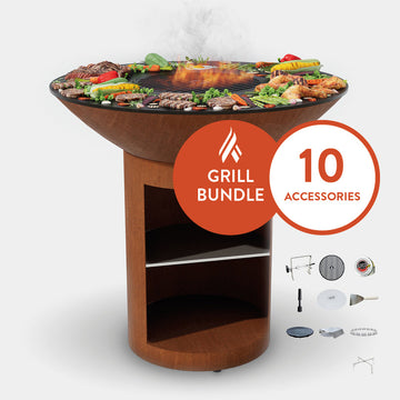 ARTEFLAME Classic 40" Grill With A High Round Base With Storage Starter Bundle With 2...
