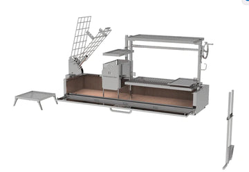 Stationary charcoal Argentine With Asador | BBQ02SS Product Includes : Swivel secondary grate Clamp grill...