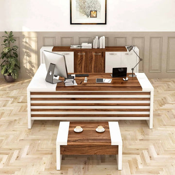 Casa Mare LEON Modern L-Shaped Home & Office Furniture Desk White & Brown LEON-87WB-R-S CASA...