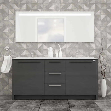 Casa Mare Nona Glossy Grey Acrylic Bathroom Vanity (Nona180GG-70-MSC-S) Simple and modern lines mark the...