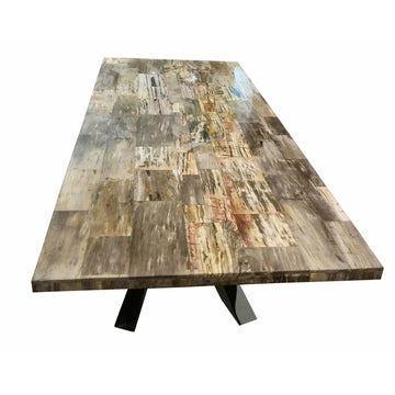 AFD Home 60 Inch Round Petrified Light Wood Table With Stainless Base 12018126 A very...