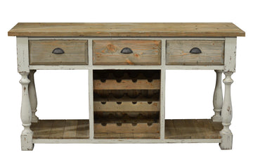 AFD Home Farmhouse Console with Wine Rack White Chalk and Natural 12008003 Dimensions: 63.00 x...