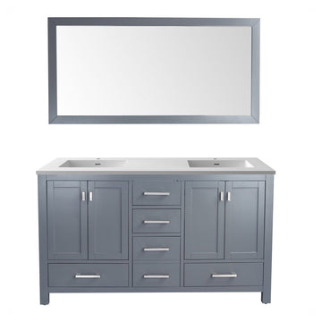 Laviva Wimbledon 60" Grey Double Sink Bathroom Vanity with Matte White VIVA Stone Solid Surface...