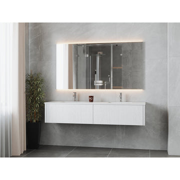Laviva Legno 66" Alabaster White Bathroom Vanity with Matte White VIVA Stone Solid Surface Countertop...
