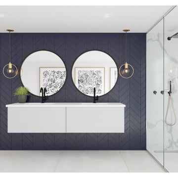 Laviva Vitri 60" Nautical Blue Double Sink Bathroom Vanity with VIVA Stone Matte White Solid...