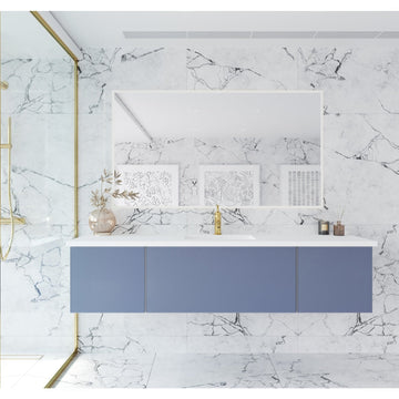 Laviva Vitri 66" Nautical Blue Single Sink Bathroom Vanity with VIVA Stone Matte White Solid...