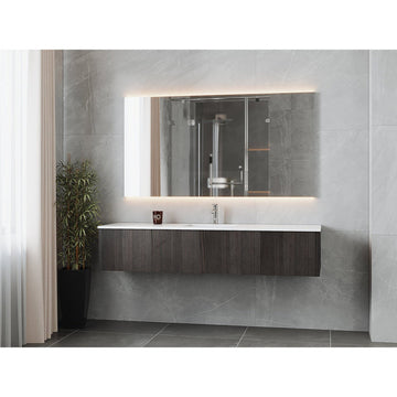 Laviva Legno 66" Carbon Oak Bathroom Vanity with Matte White VIVA Stone Solid Surface Countertop...