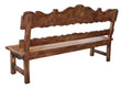 The Belruse High Back Bench is a substantial fully assembled bench from our popular Belruse Series. This series boasts a Spanish influence with large scaled details and its multi layered finish of light and dark sienna and brown tones with subtle natural contrasts resulting from hand rubbing and exposing the rich wood undertones then delicately detailed with hand painted soft scrolls.