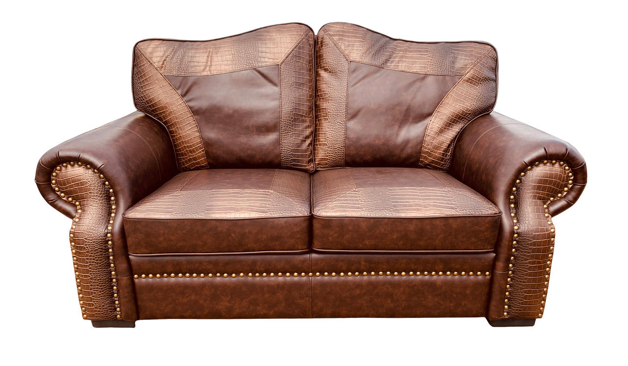 A Lustrous Botswana Croc and Micro Leather Loveseat 73 inches Wide X 42 inches Deep X 41 inches Tall, The Botswana Love Seat is part of the Extensive Botswana Collection from The AFD Home Collection. A design that works beautifully in Family Rooms, Offices, Club Houses from Urban Rustic to Traditional.
