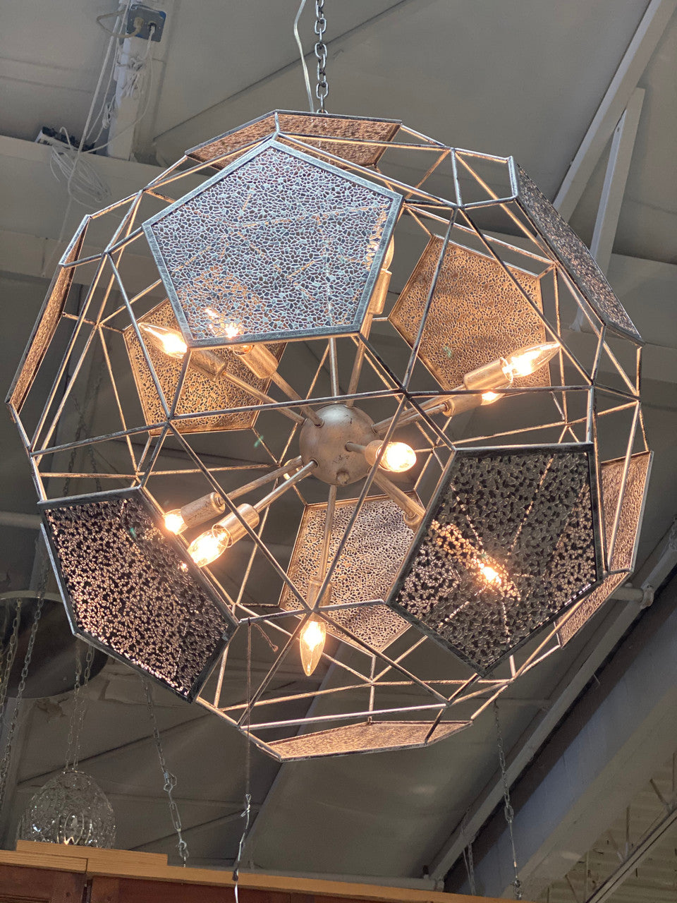 The Hemisphere chandeliers are available in two different sizes 12 lights and 9 lights. Give your home's lighting a quirky twist this multi-directional chandelier. This round with pentagons design chandelier and a silver-tone finish complements your contemporary home decor. Perfect for an entryway, or in any room of your home where you would want to add a touch of elegance.