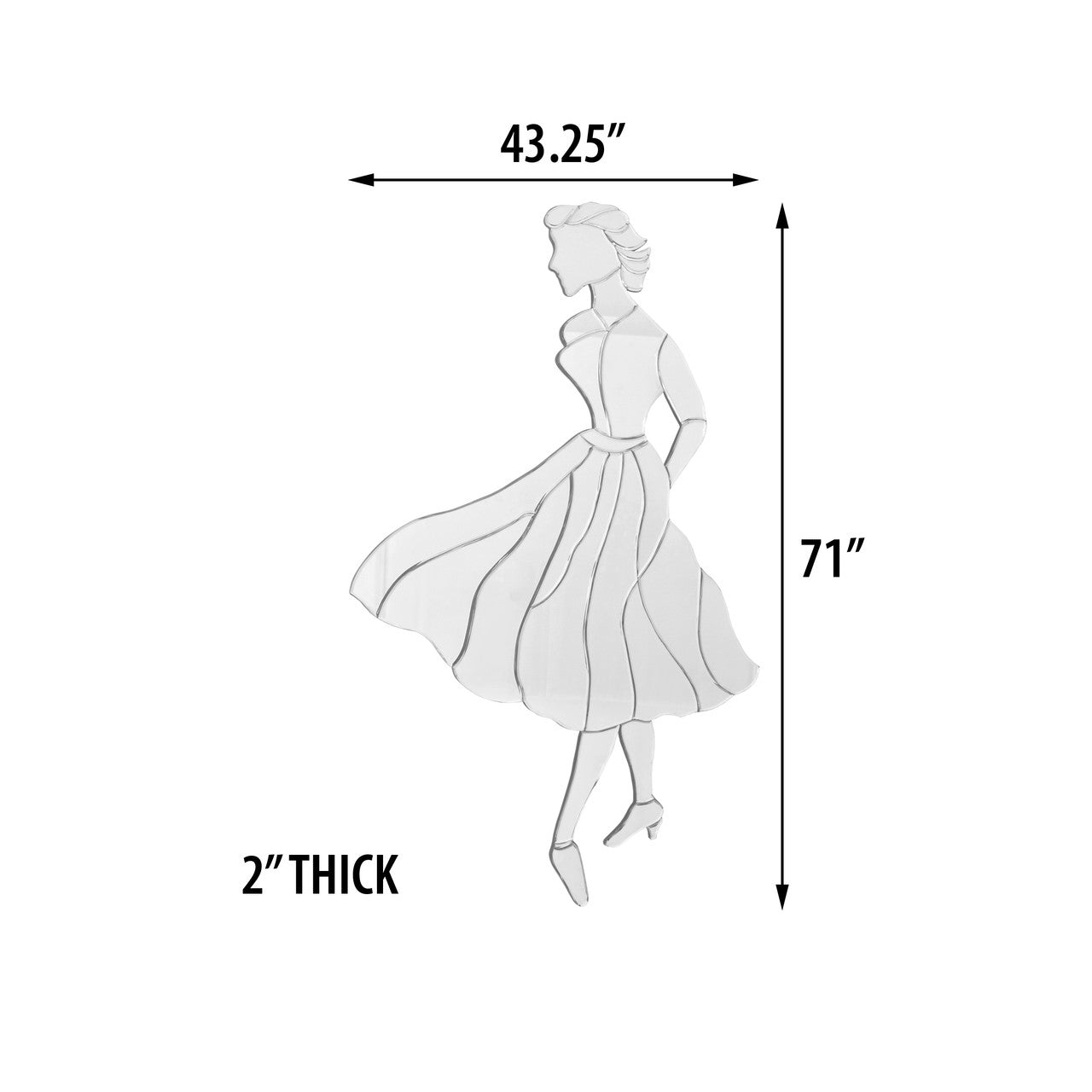 A Venetian Style Mirror of a Retro Figural Lady Mirror 71 " Tall. An artistic interpreted throwback to the 50's and a Sweet depiction of a loveable young Lady in her fashionable wide swing Poodle Skirt emitting feelings of Fun and Dance in the art of a Venetian Style Mirror.