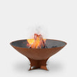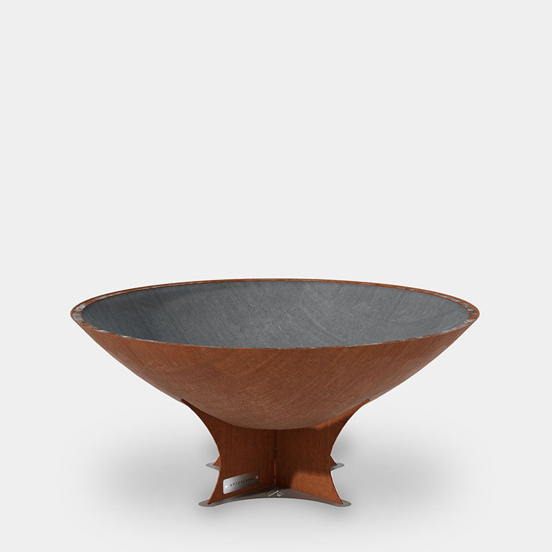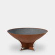 - Fire bowl is spun from a single piece of corten steel without seams or welds