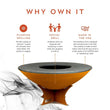 - Fire bowl is spun from a single piece of corten steel without seams or welds