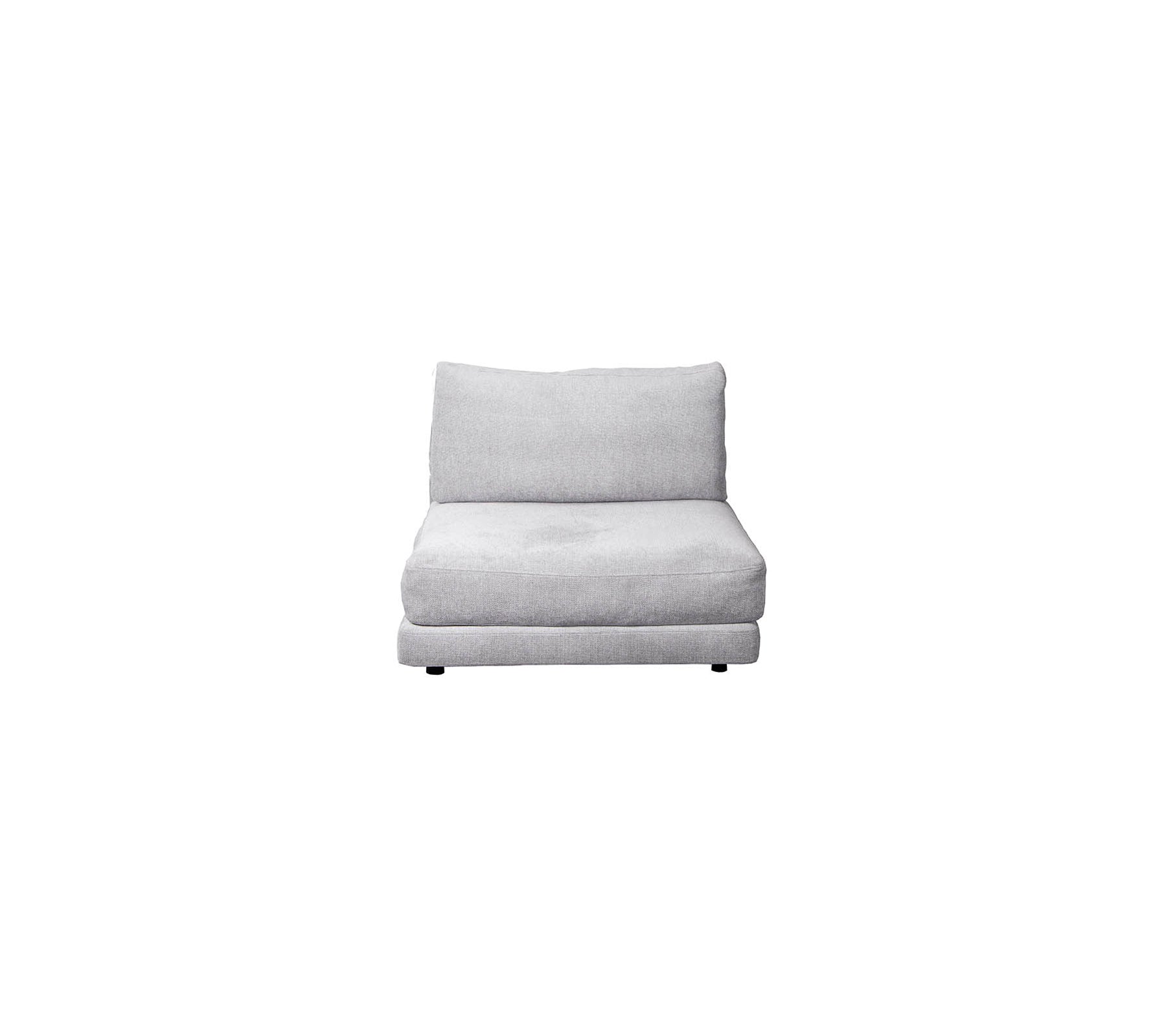 Scale single module. Scale is a soft and relaxed sofa in a Scandinavian cozy design. The sofa combines a soft, ample form with outstanding materials in a well-proportioned design. Scale has a low seating height and deep seats which create room for unwinding with your loved ones. By combining the different elements within the series, you can change the appearance and functions of the sofa to your comfort. The upholstery in Cane-line fabric is soft and comfortable. Scale has a boxy look with significant armrests which is softened by the fluffy cushions with down filling for ultimate comfort.