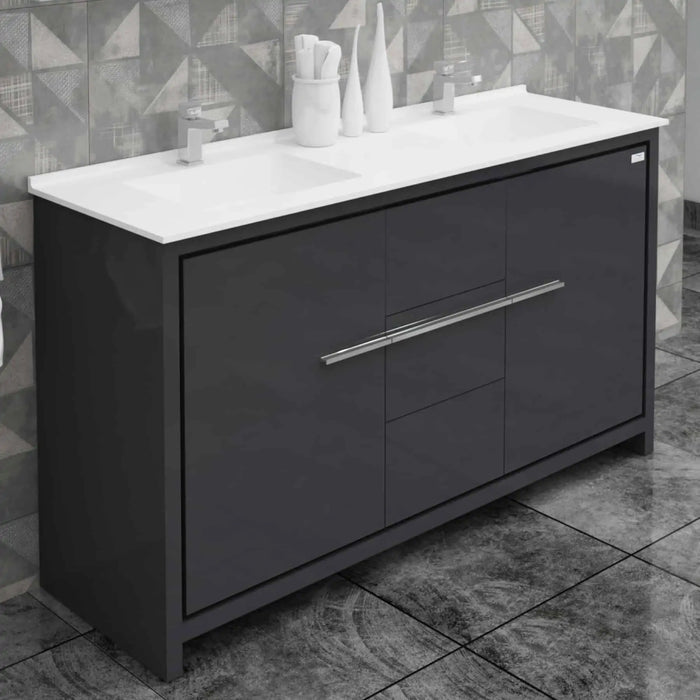 Casa Mare Alessio Glossy Gray Acrylic Bathroom Vanity (Alessio152GG-60-MSC-S)