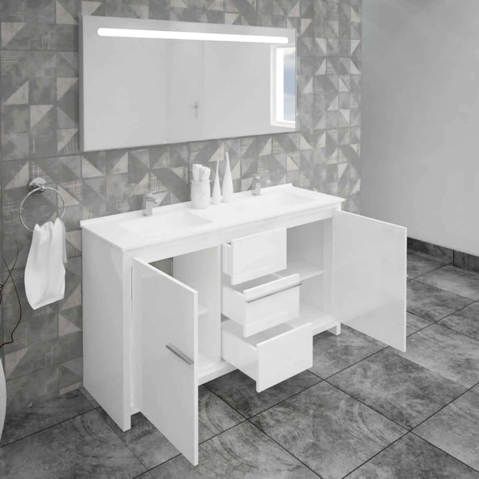 Add some style and vibrance in your bathroom using our Alessio bathroom vanity. It has been designed with you in mind to ensure that you get an exquisite vanity set. Designers with an attentive eye for detail have made the set. Each detail has been placed with great care and precision. The drawers provide extra space to store your items. The bathroom vanity set is easy to assemble. We have made it using eco-friendly materials to ensure that we keep the environment safe. Our bathroom vanity set helps you save water and can last for years without damage. It has been made using quality materials that enhance its durability. Our vanity set features a modern design that can blend with any d?©cor. Order our Alessio Bathroom Vanity and get to add a personalized style to your bathroom d?©cor.