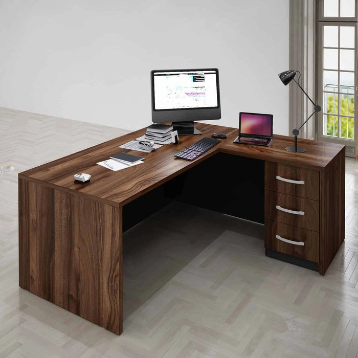 CASA MARE ATLAS L-shaped design saves space while offering plenty of room to spread out. Built from durable engineered wood, this modern office desk is built to last and is sturdy enough to hold all of your items. Super sturdy, rugged and reliable mechanical design to ensure the excellent stability of the desk. Features three drawers to keep everything from office supplies to files safely stowed and at an arm’s reach. Desk storage details includes three box drawer for supplies. File drawer with full extension slides holds letter-size hanging files. Enjoy a beautiful traditional look with smart features for your convenience.
