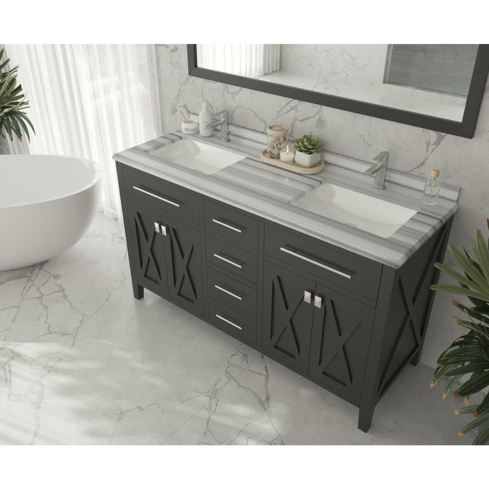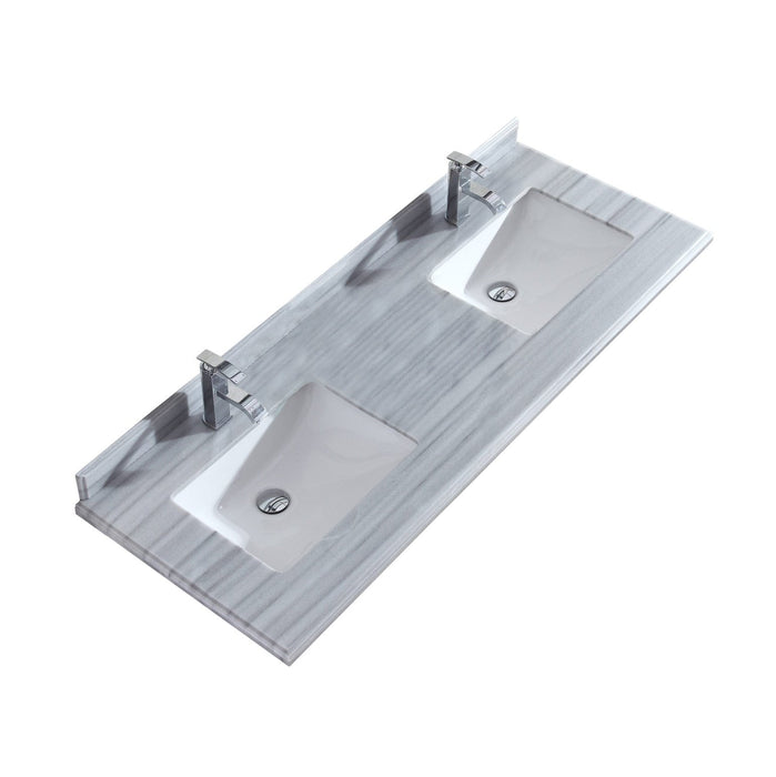 Laviva Forever 60" Single Hole White Stripes Marble Countertop with Double Rectangular Ceramic Sinks 313SQ1H-60-WS