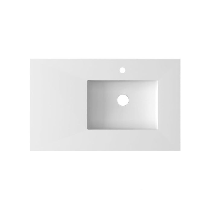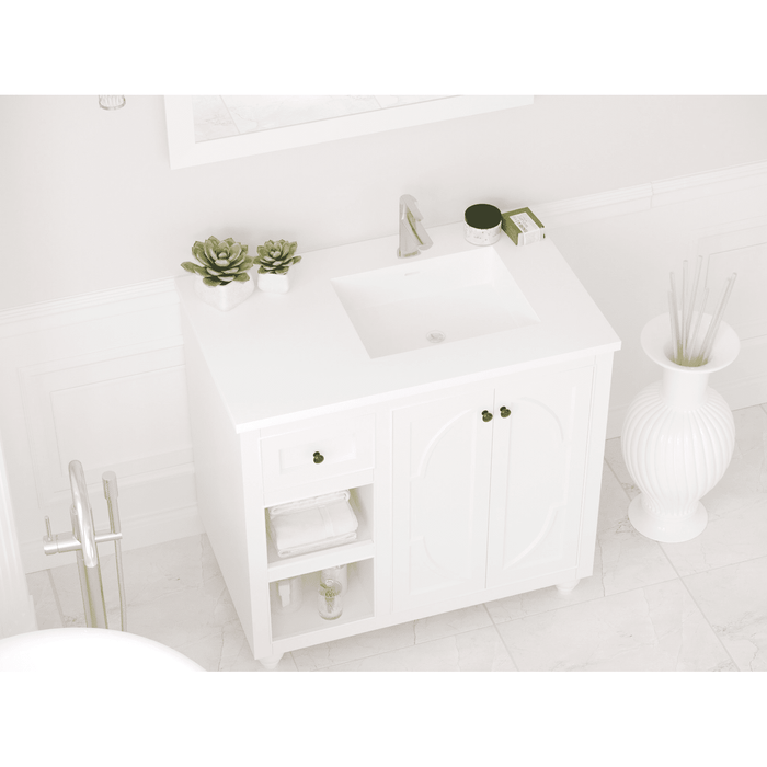 Laviva Forever VIVA Stone 36" Matte White Solid Surface Countertop with Right Offset Integrated Sink 313SQ1HSS-36R-MW