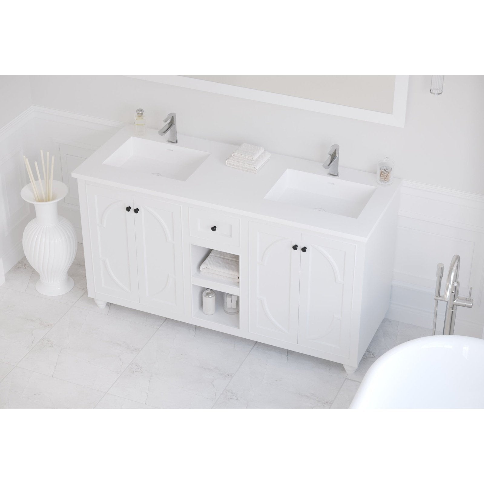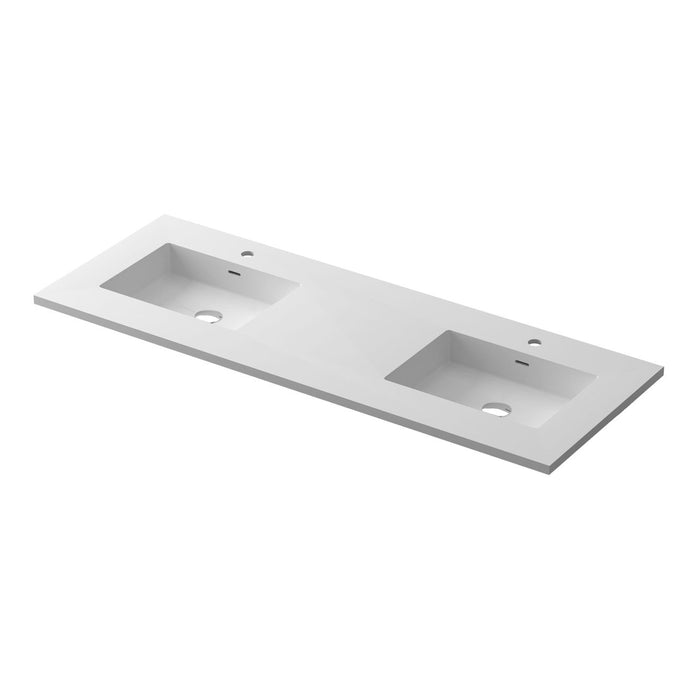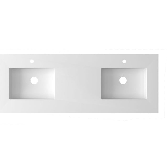 Laviva Forever VIVA Stone 60" Matte White Solid Surface Countertop with Double Integrated Sinks 313SQ1HSS-60D-MW