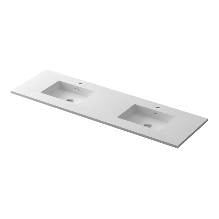 Laviva Forever VIVA Stone 72" Matte White Solid Surface Countertop with Double Integrated Sinks 313SQ1HSS-72D-MW