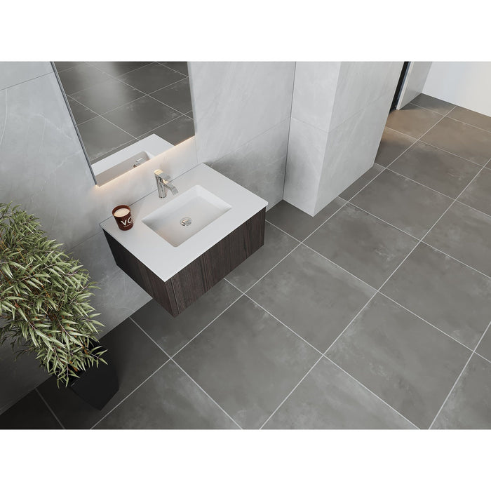 Laviva Legno 30" Carbon Oak Bathroom Vanity with Matte White VIVA Stone Solid Surface Countertop 313LGN-30CR-MW