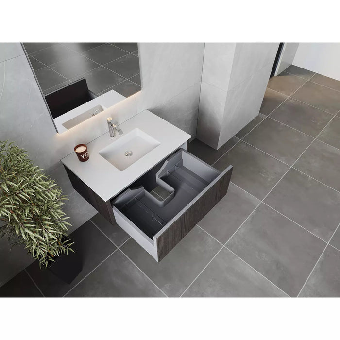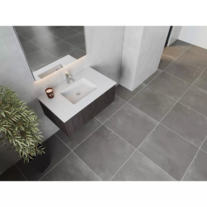 Laviva Legno 36" Carbon Oak Bathroom Vanity with Matte White VIVA Stone Solid Surface Countertop 313LGN-36CR-MW
