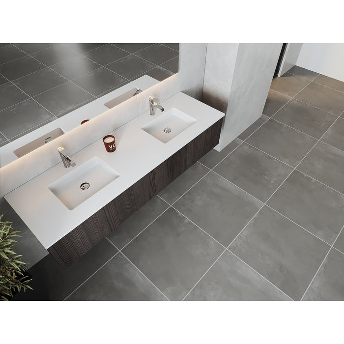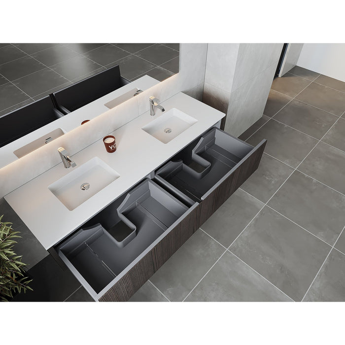 Laviva Legno 72" Carbon Oak Double Sink Bathroom Vanity with Matte White VIVA Stone Solid Surface Countertop 313LGN-72DCR-MW