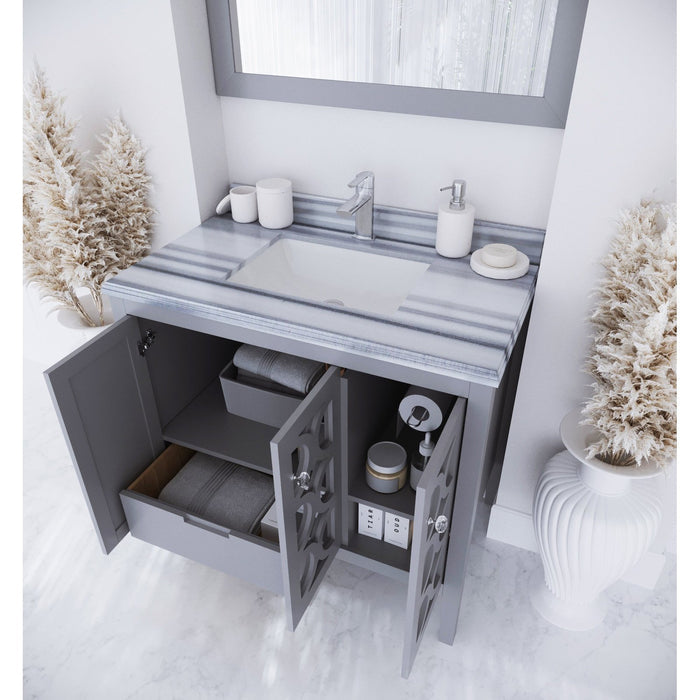 Laviva Mediterraneo 36" Grey Bathroom Vanity with White Stripes Marble Countertop 313MKSH-36G-WS