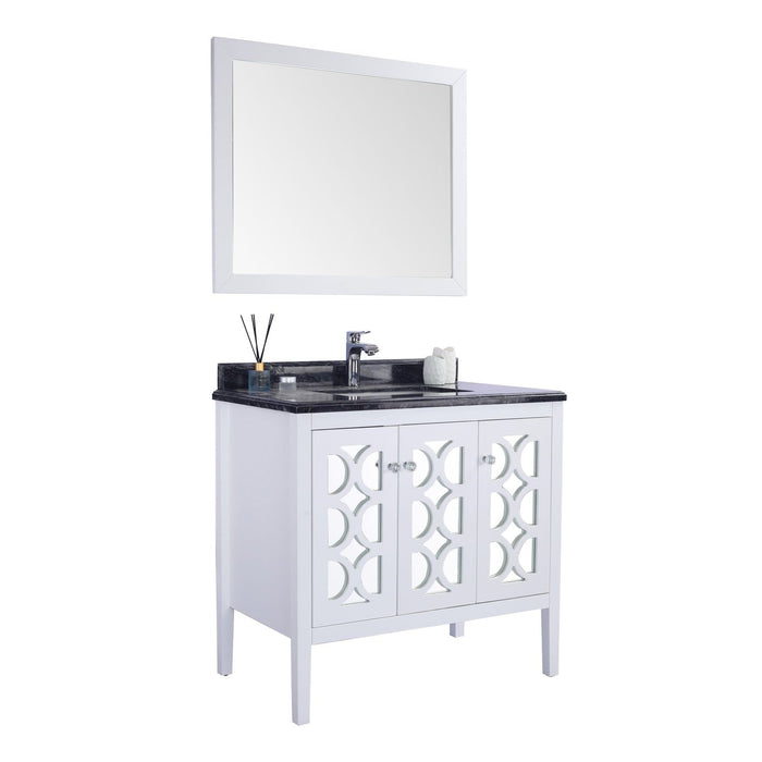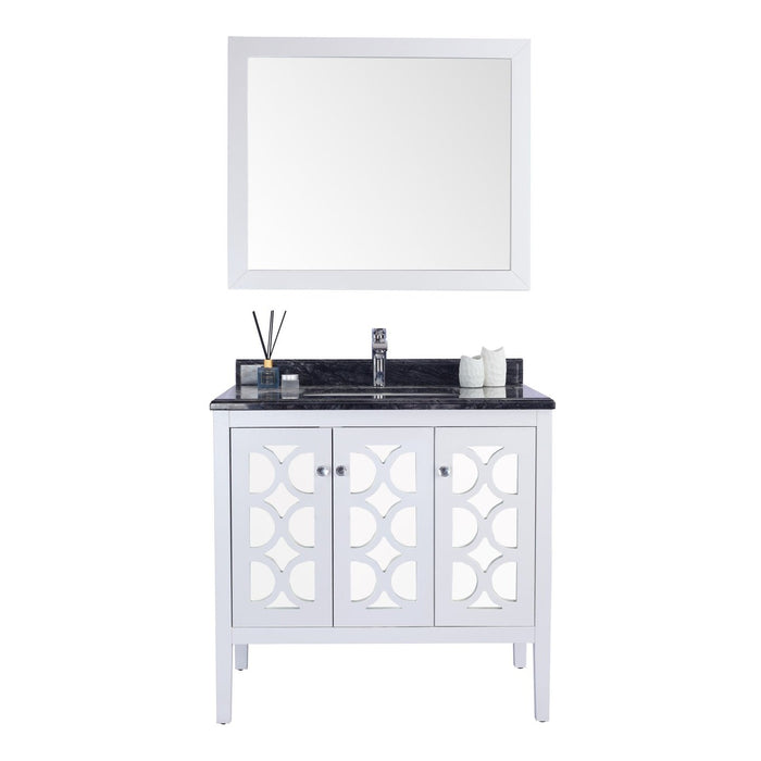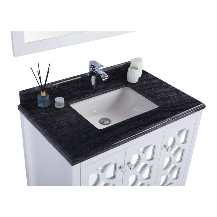 Laviva Mediterraneo 36" White Bathroom Vanity with Black Wood Marble Countertop 313MKSH-36W-BW