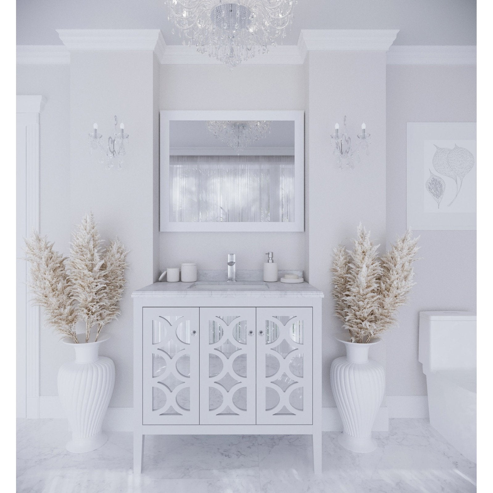 Laviva Mediterraneo 36" White Bathroom Vanity with White Carrara Marble Countertop 313MKSH-36W-WC
