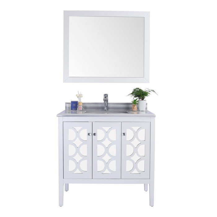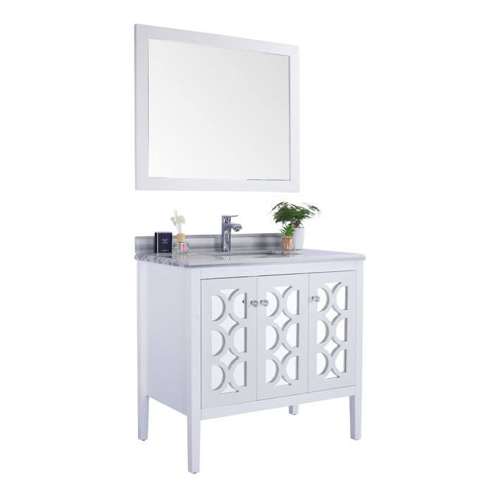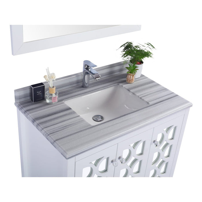 Laviva Mediterraneo 36" White Bathroom Vanity with White Stripes Marble Countertop 313MKSH-36W-WS