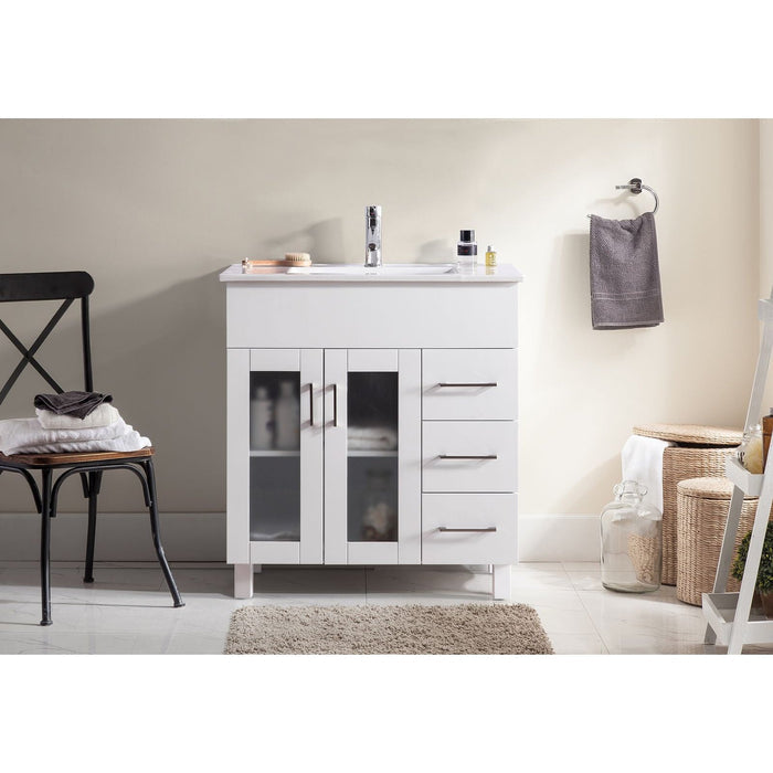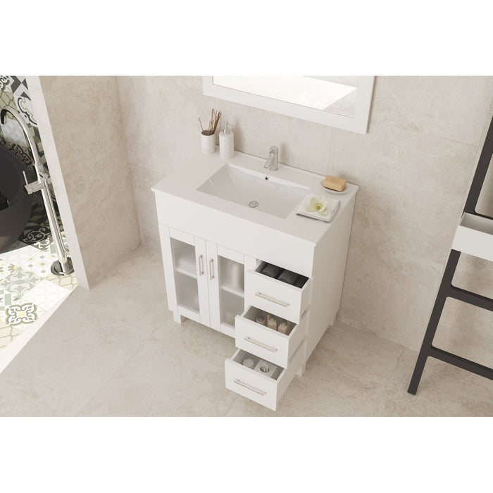Laviva Nova 32" White Bathroom Vanity with White Ceramic Basin Countertop 31321529-32W-CB