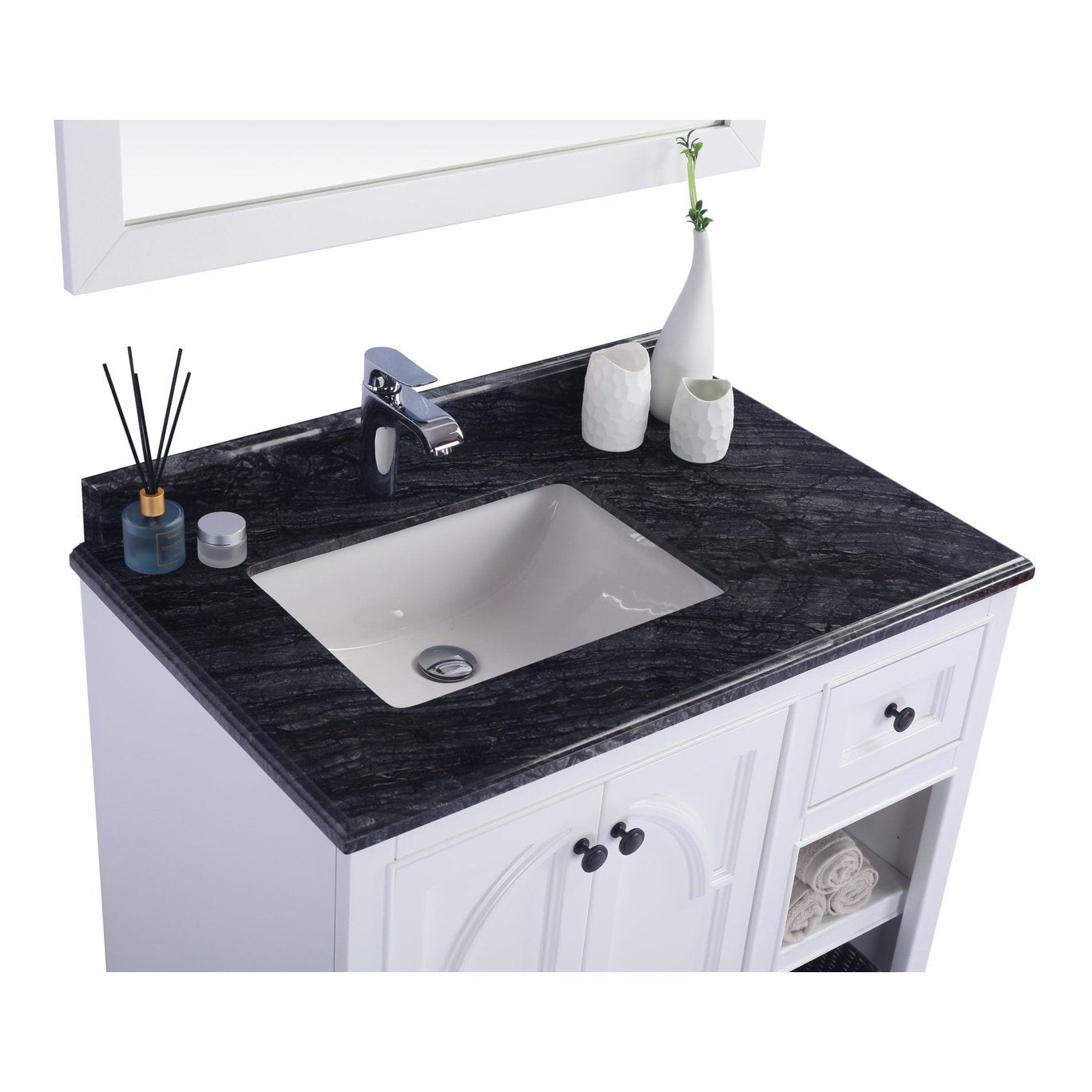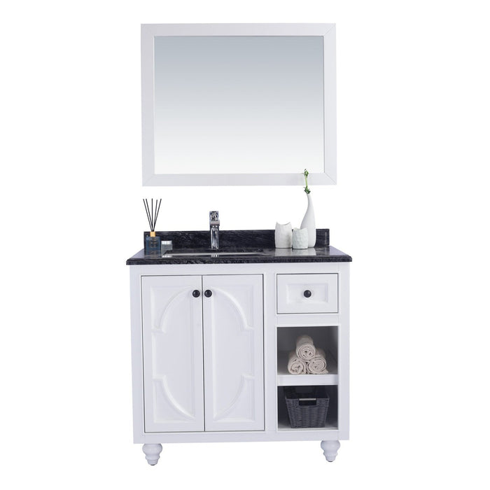 Laviva Odyssey 36" White Bathroom Vanity with Black Wood Marble Countertop 313613-36W-BW