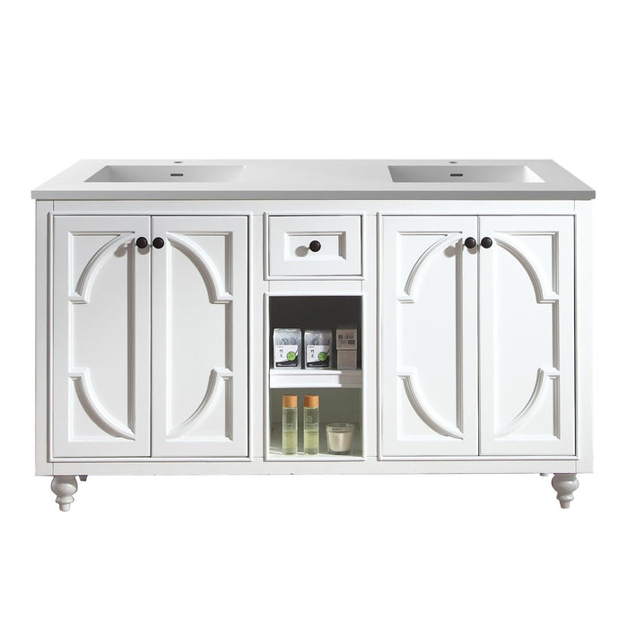 Laviva Odyssey 60" White Double Sink Bathroom Vanity with Matte White VIVA Stone Solid Surface Countertop 313613-60W-MW