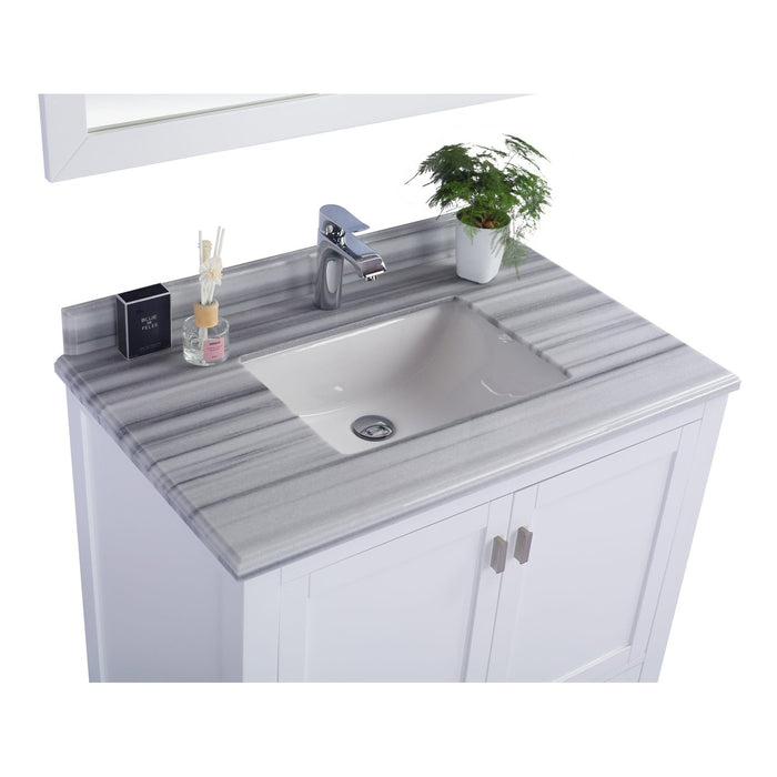 Laviva Wilson 36" White Bathroom Vanity with White Stripes Marble Countertop 313ANG-36W-WS