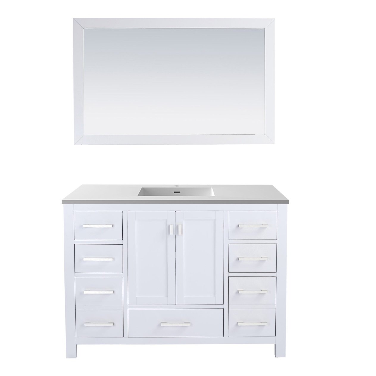 Laviva Wilson 48" White Bathroom Vanity with Matte White VIVA Stone Solid Surface Countertop 313ANG-48W-MW