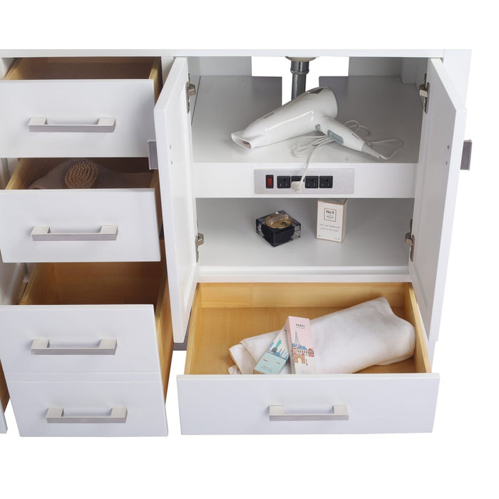 The Wilson Collection is a uniquely simple yet attractive collection. It features recessed panel doors with a shaker style design that is inset within the cabinet frame. The shaker style cabinets is inspired by the furniture designed by the Shakers, who were extremely skilled craftsmen and carpenters. Not sacrificing quality, the Wilson Collection is constructed with solid oak wood, includes high quality soft closing rails and hinges, and solid wood, dovetail construction drawers. Additionally, with functionality in mind, there are 4 electrical outlets inside the cabinet to keep all your electronics plugged in and ready to use. This collection offers a variety of colors and sizes to fit your bathroom.