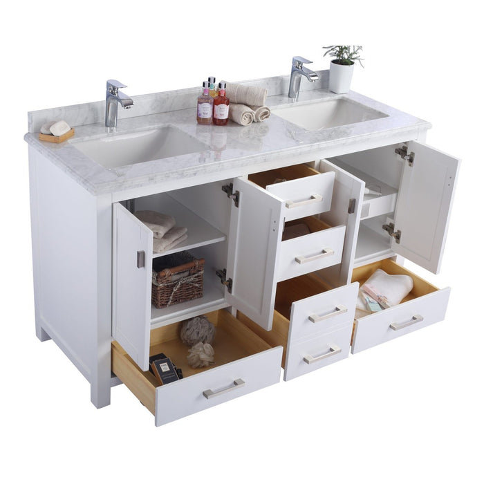 Laviva Wilson 60" White Double Sink Bathroom Vanity with White Carrara Marble Countertop 313ANG-60W-WC