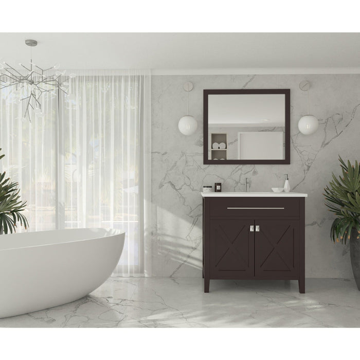 Laviva Wimbledon 36" Brown Bathroom Vanity with Matte White VIVA Stone Solid Surface Countertop 313YG319-36B-MW