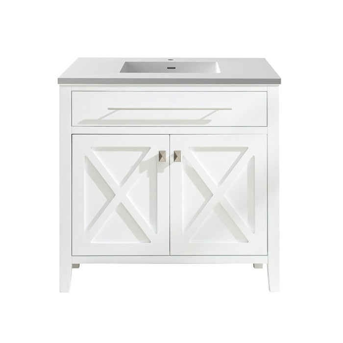 Laviva Wimbledon 36" White Bathroom Vanity with Matte White VIVA Stone Solid Surface Countertop 313YG319-36W-MW