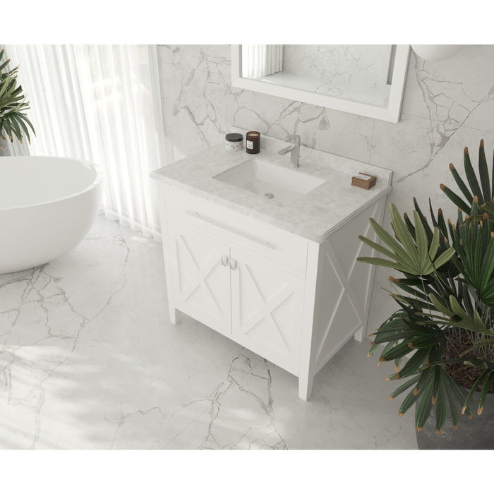 Laviva Wimbledon 36" White Bathroom Vanity with White Carrara Marble Countertop 313YG319-36W-WC