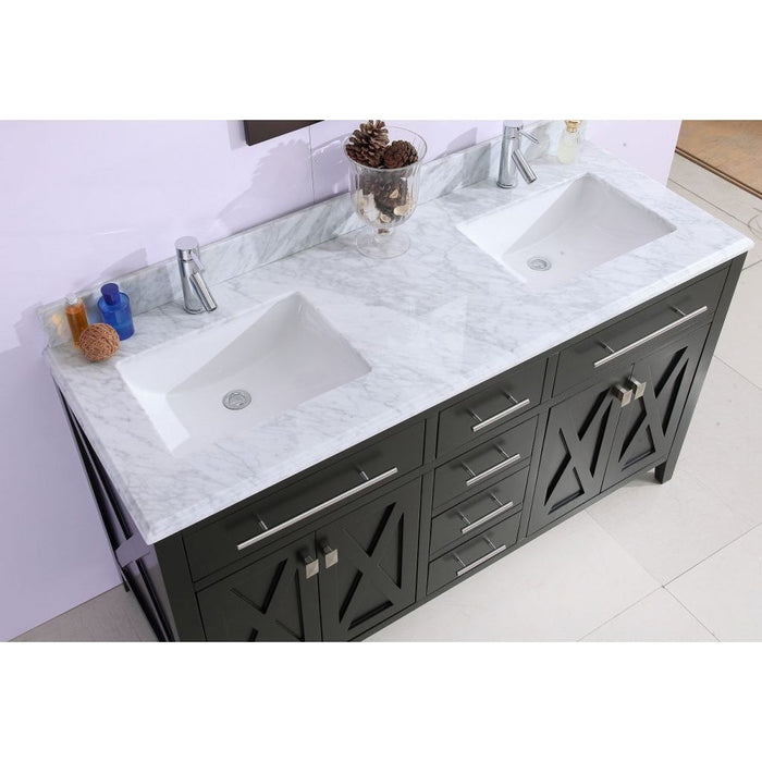 Laviva Wimbledon 60" Espresso Double Sink Bathroom Vanity with White Carrara Marble Countertop 313YG319-60E-WC