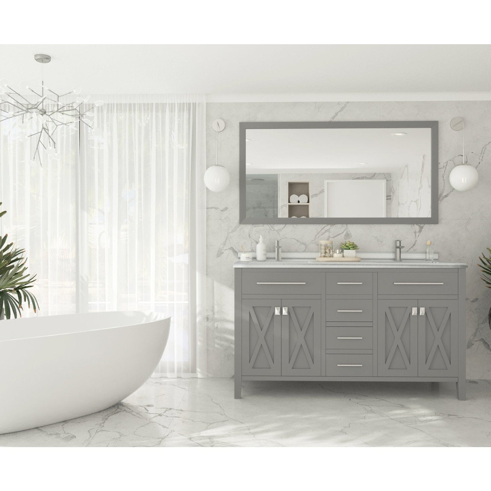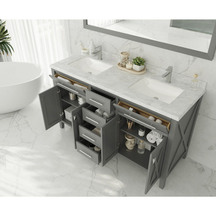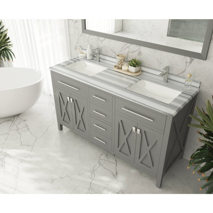 Laviva Wimbledon 60" Grey Double Sink Bathroom Vanity with White Stripes Marble Countertop 313YG319-60G-WS