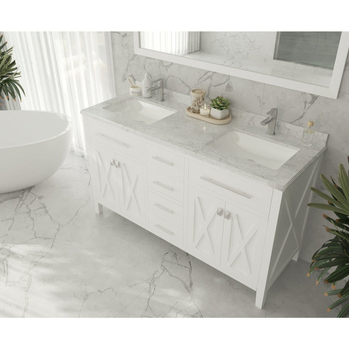 Laviva Wimbledon 60" White Double Sink Bathroom Vanity with White Carrara Marble Countertop 313YG319-60W-WC