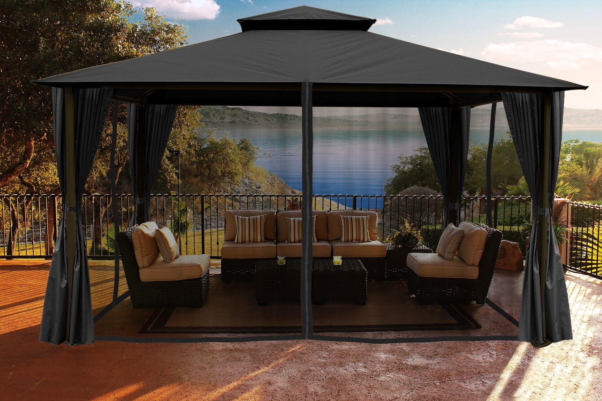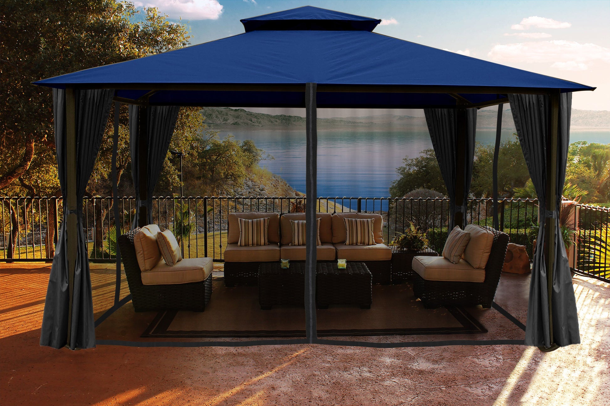 The 11' x 14' Kingsbury Soft-Top Gazebo is designed with top notch materials to provide shade and enjoyment to you and your family for years to come.